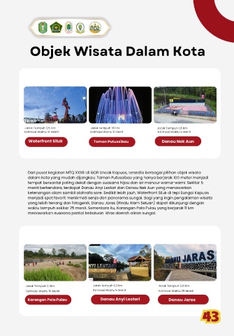 Dari pusat kegiatan MTQ XXXIII di GOR Uncak Kapuas, tersedia berbagai pilihan objek wisata